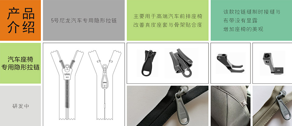 我們提供汽車專用拉鏈、標識扣、標識嘜、粘扣帶/刺毛帶,織帶/松緊帶,塑料扣件等其他汽車內飾、汽車座椅系統部件。